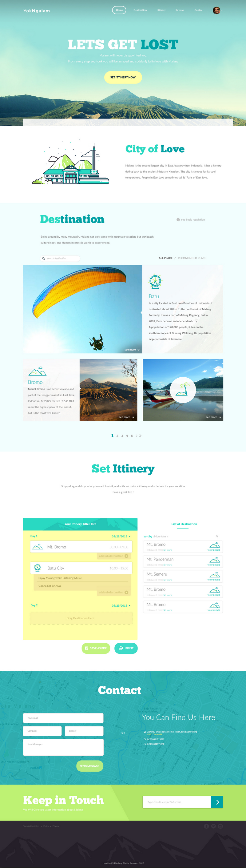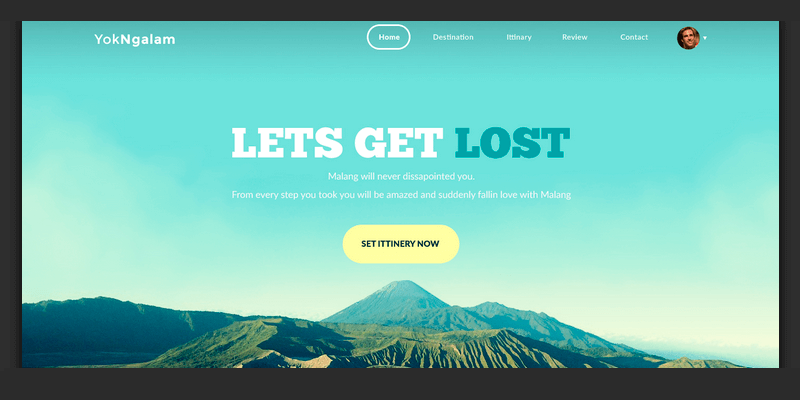 An inspiring PSD Template for daily training based on the travel site Malang, Indonesia, hometown of its creator Dany Rizky. It has a full-width header and 3 main parts: destination, itinerary widget and contact sections.