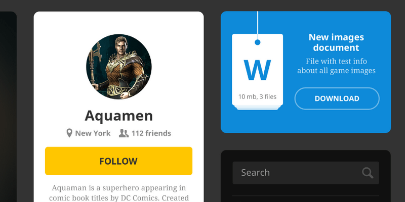 A cool and free user interface made in PSD format. It has charts, calendars, profile widgets, maps pins, blog post widgets, author badges, clock widgets and more. It is focused on video games, and the PSD files are totally editable and its layers organized. The set was created by Влад Камельский and it weighs about 162MB.