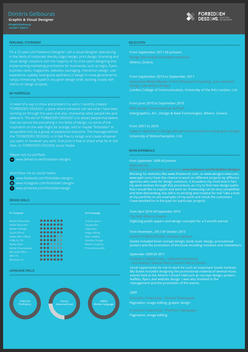 A clean, well-organized Resume Template freebie from Forbidden Designs, contains a file to work with on Adobe Illustrator for the resume, fully editable vector shapes to customize the template to better fit your needs. It also includes a PSD with over 300 free icons to use on your resume.