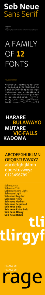 A modern and creative sans typeface featuring 12 weights from air to black; with a complete set of glyphs. Created by Tapiwanashe Sebastian Garikayi.