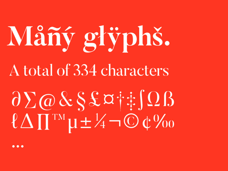 Butler is a free serif typeface inspired by a mix between both Dala Floda & the amazing Bodoni family. The whole Butler family contains a total of 334 characters, it suits many different languages with added glyphs.