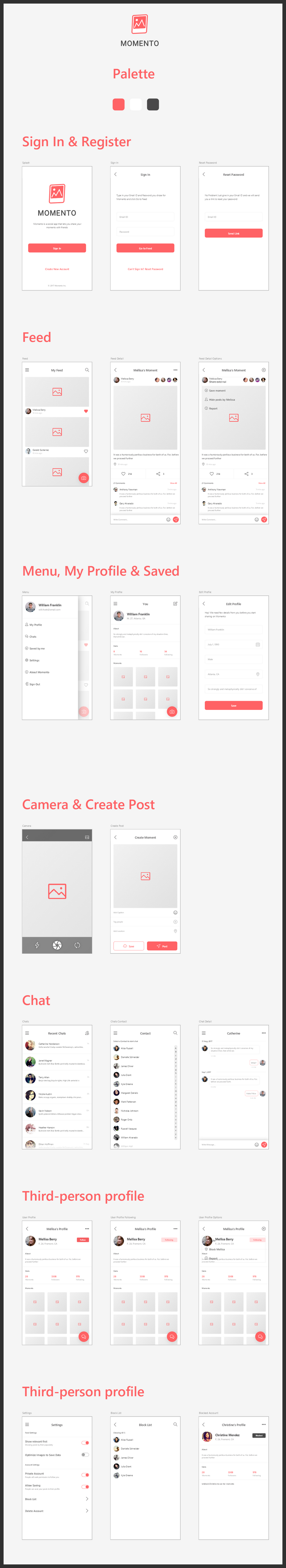 Momento is a free UI kit for social media applications by Dribbble user Kuldeep Sharma. It features screens for login, register, profile, feed, and much more! Everything is included in a single .sketch file and you’re free to download and make use of it as you will.