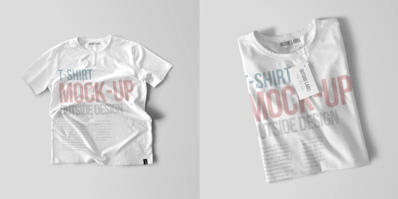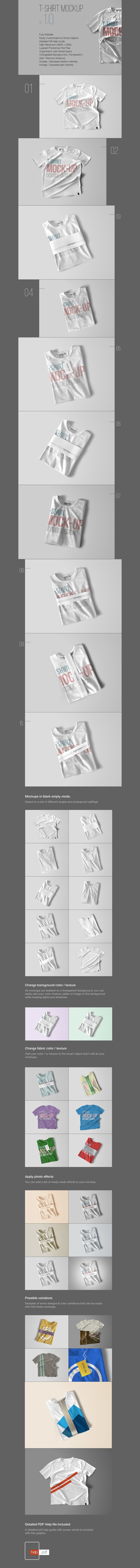 A set of 10 photo-realistic T-shirt mockups featuring several folded, wrinkled and labeled expositions perfect for branding purposes.