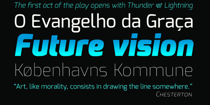 A typeface that portrays a modern/futuristic look while keeping a stylish design. It is a very useful font, featuring an impressive nine weights, each with a real italic version. Mainly used for display faces, but also useful for small to medium sizes.
