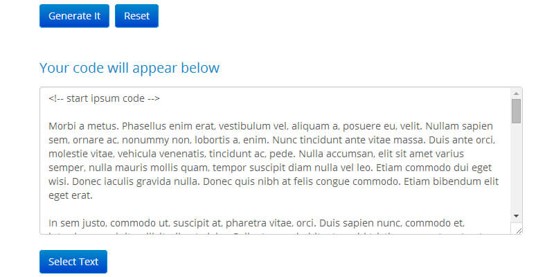 The Lorem Ipsum Code Generator creates placeholder content using latin passages. This tool allows you to see what the page is going to look like with content before the copy is available. Just select how many paragraphs you need and click generate, and then some random latin text will appear on the box.