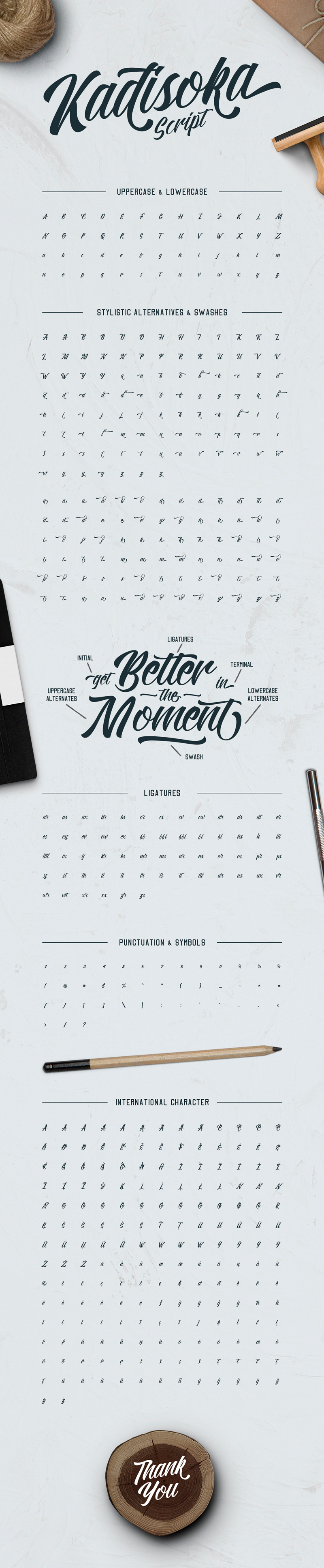 Kadisoka: Glyphs & Characters Script Font | Bypeople