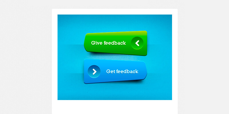 A couple of custom buttons with very particular shapes and strong, vibrant colors, creating an appealing look that can surely catch the attention of your users. They point left and right, which makes for interesting uses. PSD created by Frantisek Krivda.