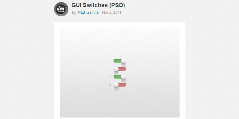 A colorful and simple group of switches that can become a nice addition to your application or webpage. The idea is to have a simple switch toggle from red to green (both are really soft and pleasant tones, by the way) to represent the selection. You can also choose to add a checkmark/X next to the items.