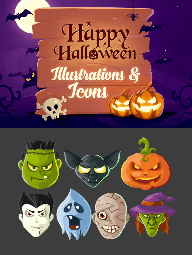 Check out a Halloween illustrations & icons pack featuring vector and photoshop shapes delivered for free that are easy to customize. Find out more Photoshop Illustrations.