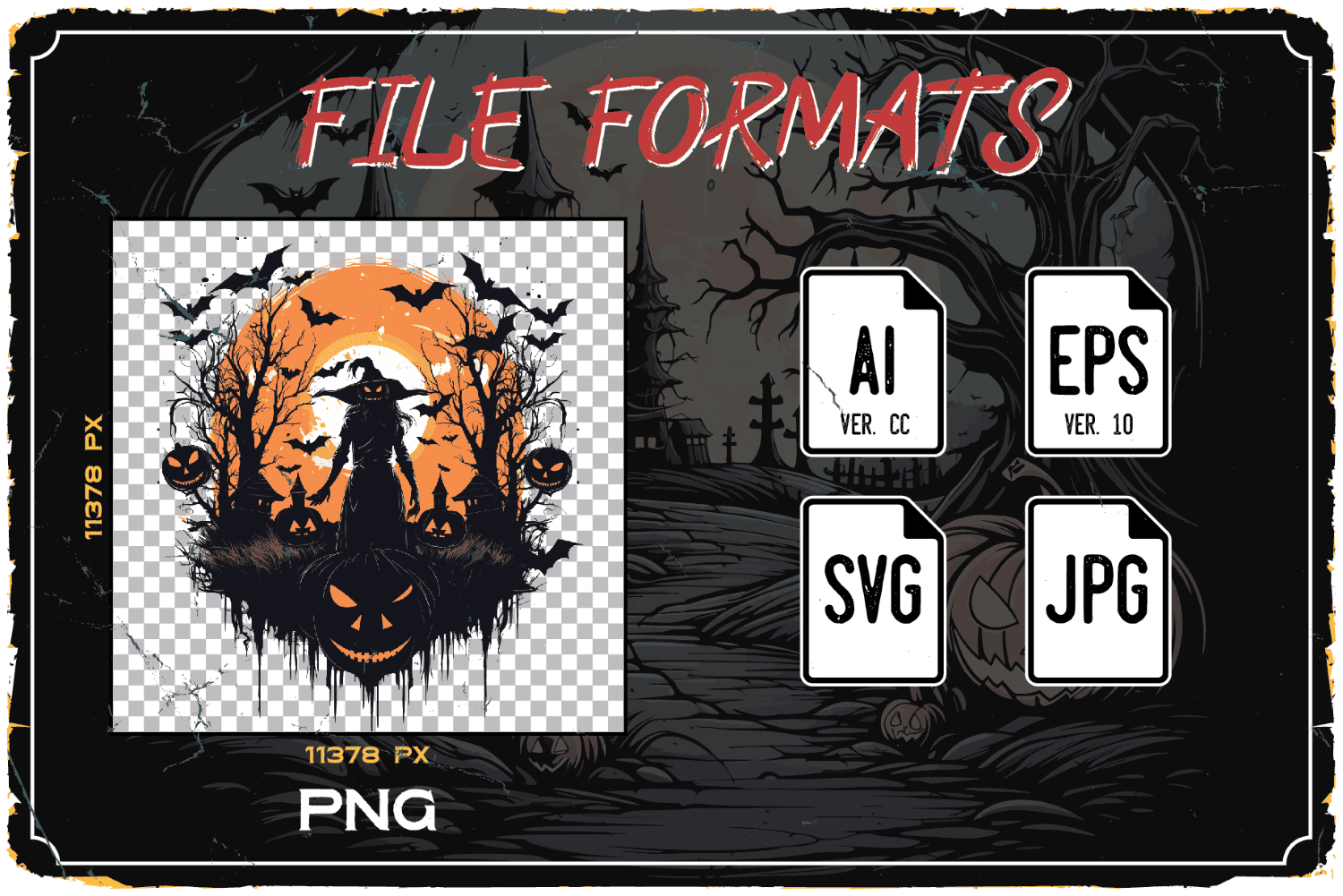 Each design also includes a high resolution PNG version with transparent background, large dimensions, and print-ready at 300dpi. With these designs you’ll be able to print halloween-themed t-shirts, totebags, cards, stickers, and everything else in between.