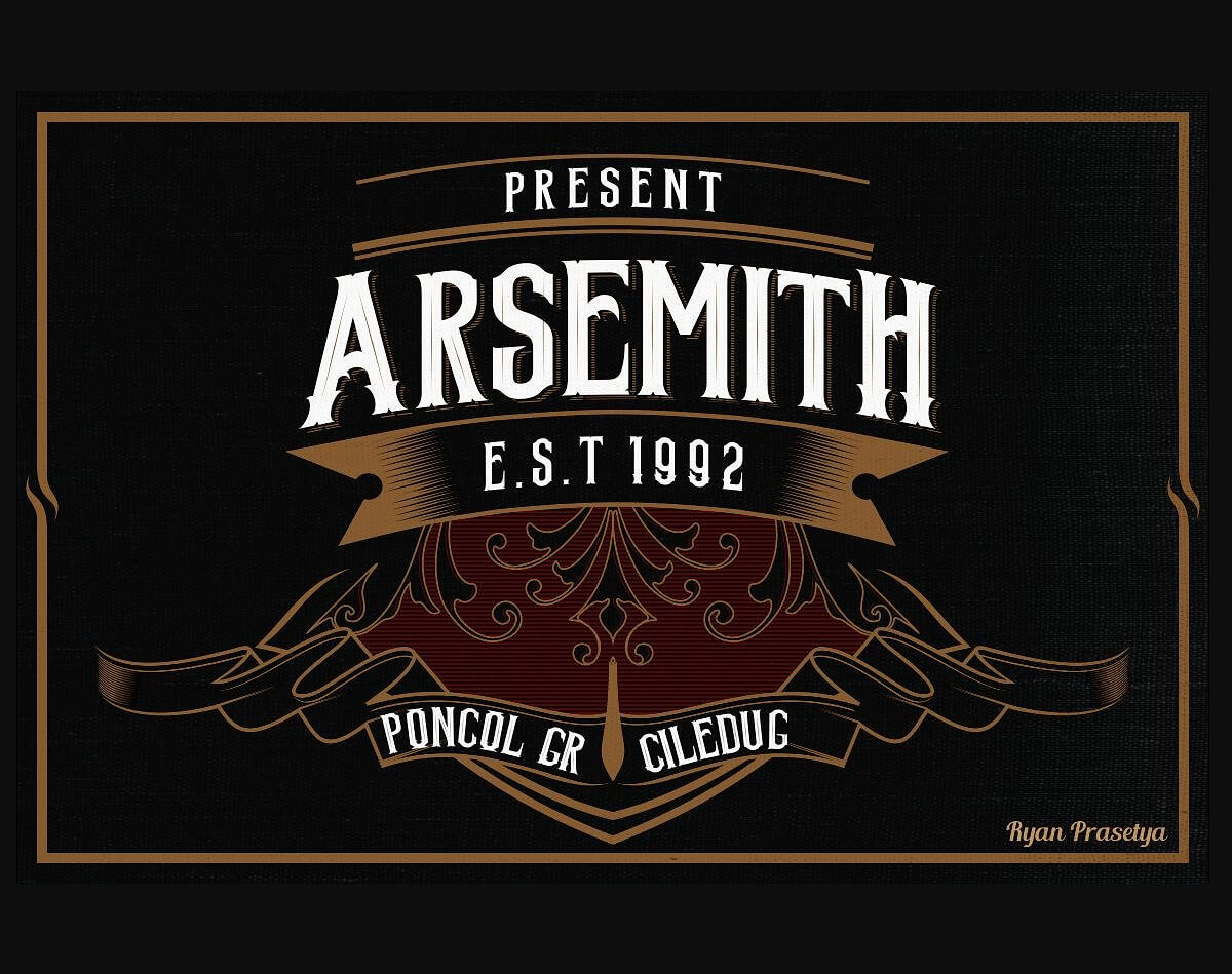 Arsemith is a vintage typeface with a modern touch. Great for almost all of your designing needs including headlines, labels, logos, etc.