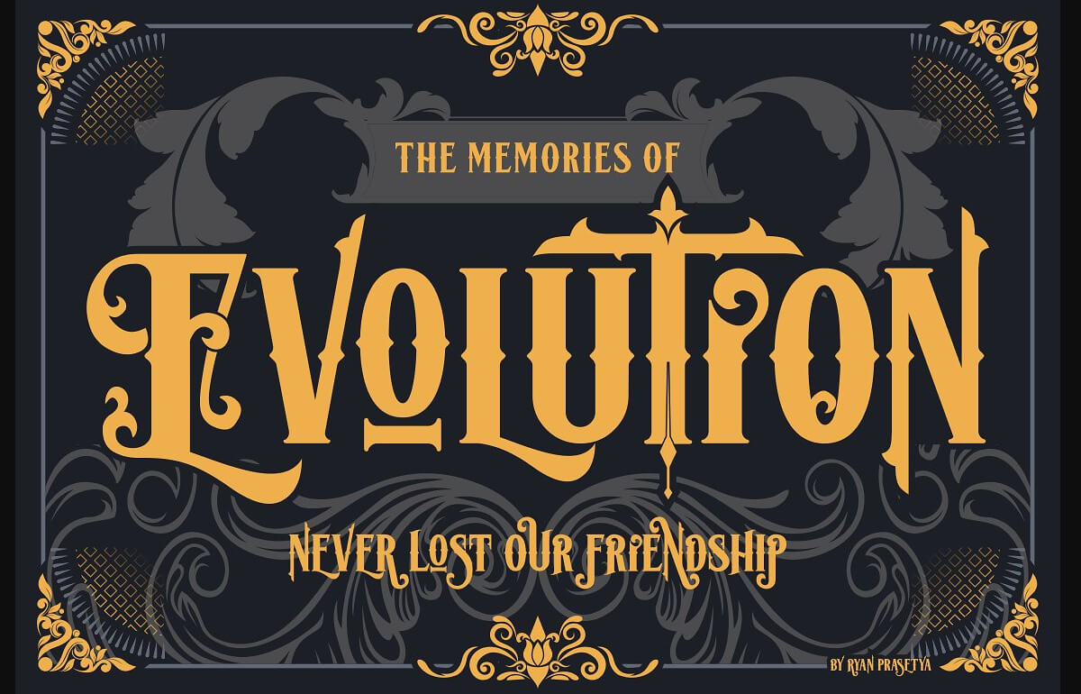 Lost volution is a new classic and decorative typeface, victorian style. This typeface come with more than 150 alternative characters to fit your typograhy