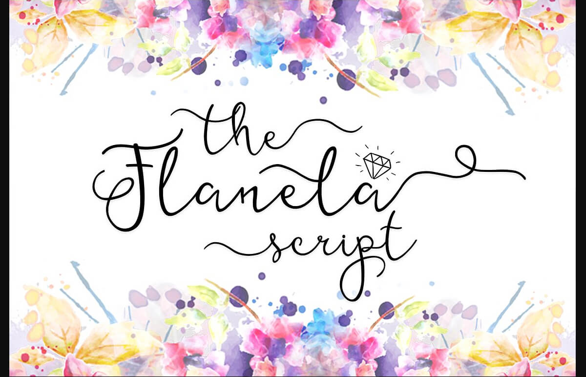 This font come with two versions: Script & Sans. The Script includes all basic characters and 190 alternative. The Flanela Sans is just a simple typeface with all caps, monoline with the basic characters, numerals and punctuations.