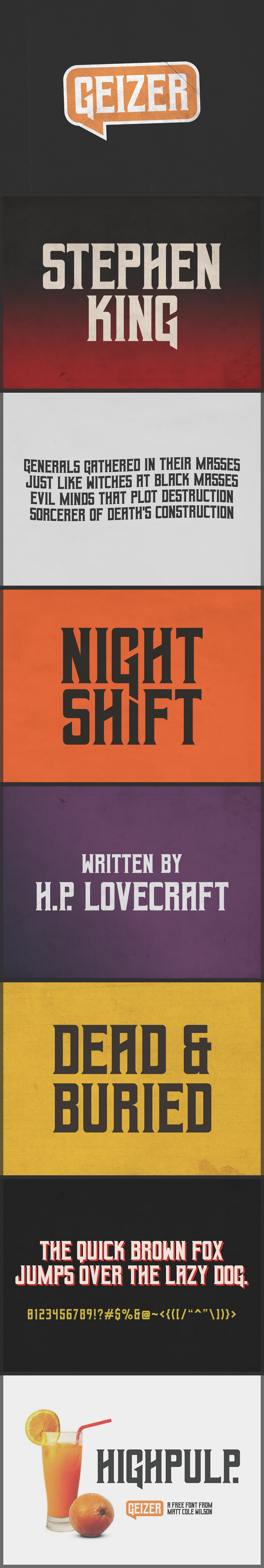 Mukadua is a serif font inspired by horror concept with discreet serifs designed to give it a spooky vibe. It features punctuation, and common glyphs, and is intended for headliners, titles, logos, and generally display purposes. Find out more Serif Fonts.