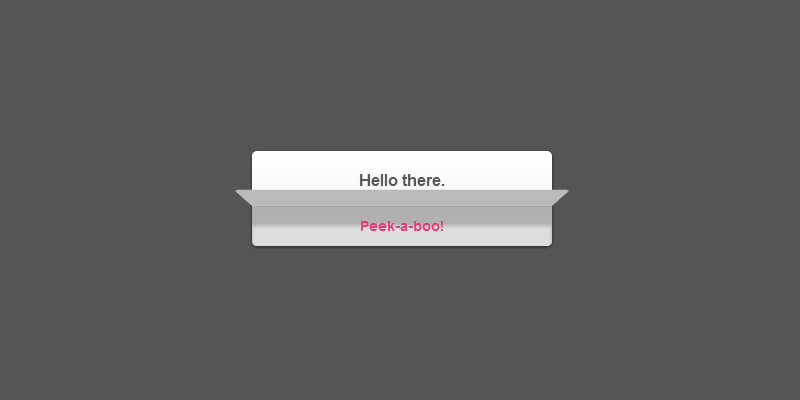 A stylish code snippet created by Ryan McLaughlin, providing two pieces of text one on top of the other. When hovering over the element below, a neat animation is activated, showing a hidden text underneath. A nice shadow effect gives added value to the design.