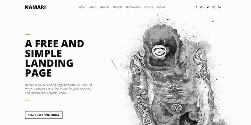 This is a one-page HTML template suited for a long-scrolling landing page. It features a sticky header navigation that smooth scrolls down to relevant sections, a parallax scrolling intro image, lightbox pop-up gallery, testimonials, pop-up video modal, client logos and a pricing table. Created by Nils Huber from ShapingRain.