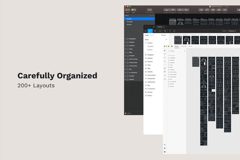 The kit features well organized files and layers, bootstrap grid system, symbols and text styles, and every component/element you’ll need to create amazing prototypes in Figma, Sketch, Adobe XD or Photoshop