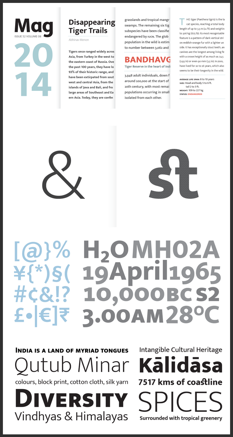 Mukta, or Ek Mukta, is a contemporary, humanist, monolinear typeface available in 7 weights. Modest and versatile, it can be used across media, content and point sizes. Being the libre licensed version of Ek Devanagari and Ek Latin, it has been designed to work harmoniously with other scripts in the Ek multi-script family. It is ideal for use where multi-script branding and text settings are required.