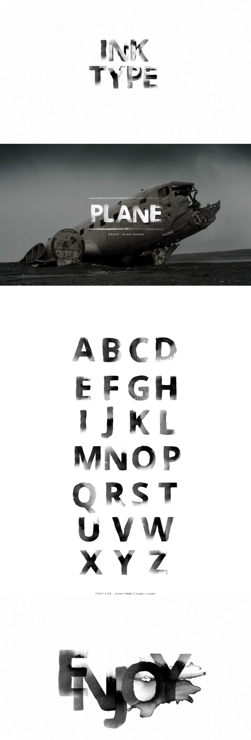 Ink Type is a dropped-ink effect based font, made entirely on bitmaps that you can use as an organized PSD file. It was created by Behance user Clément Lefevre