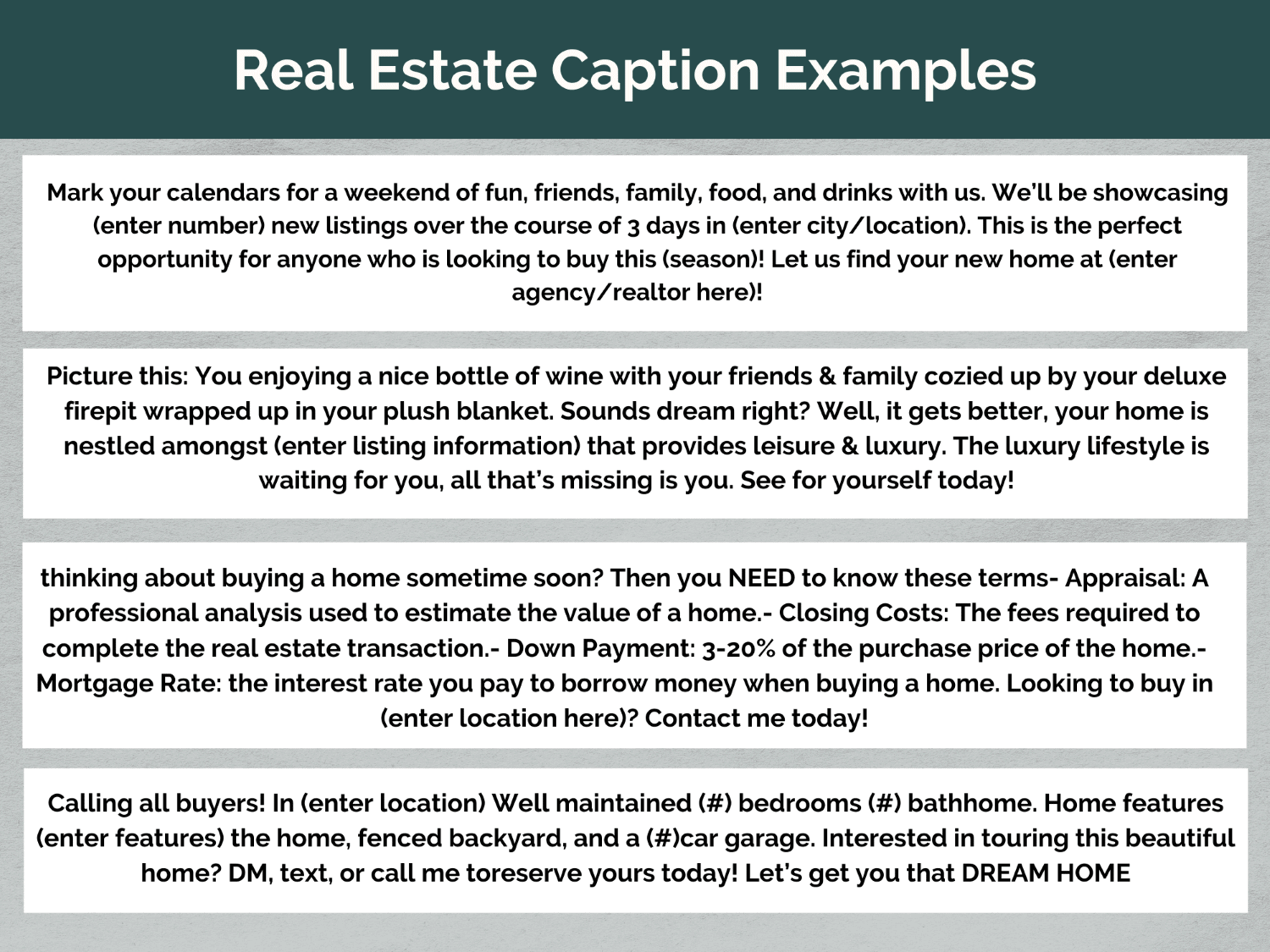 - 150+ Real Estate Caption Templates