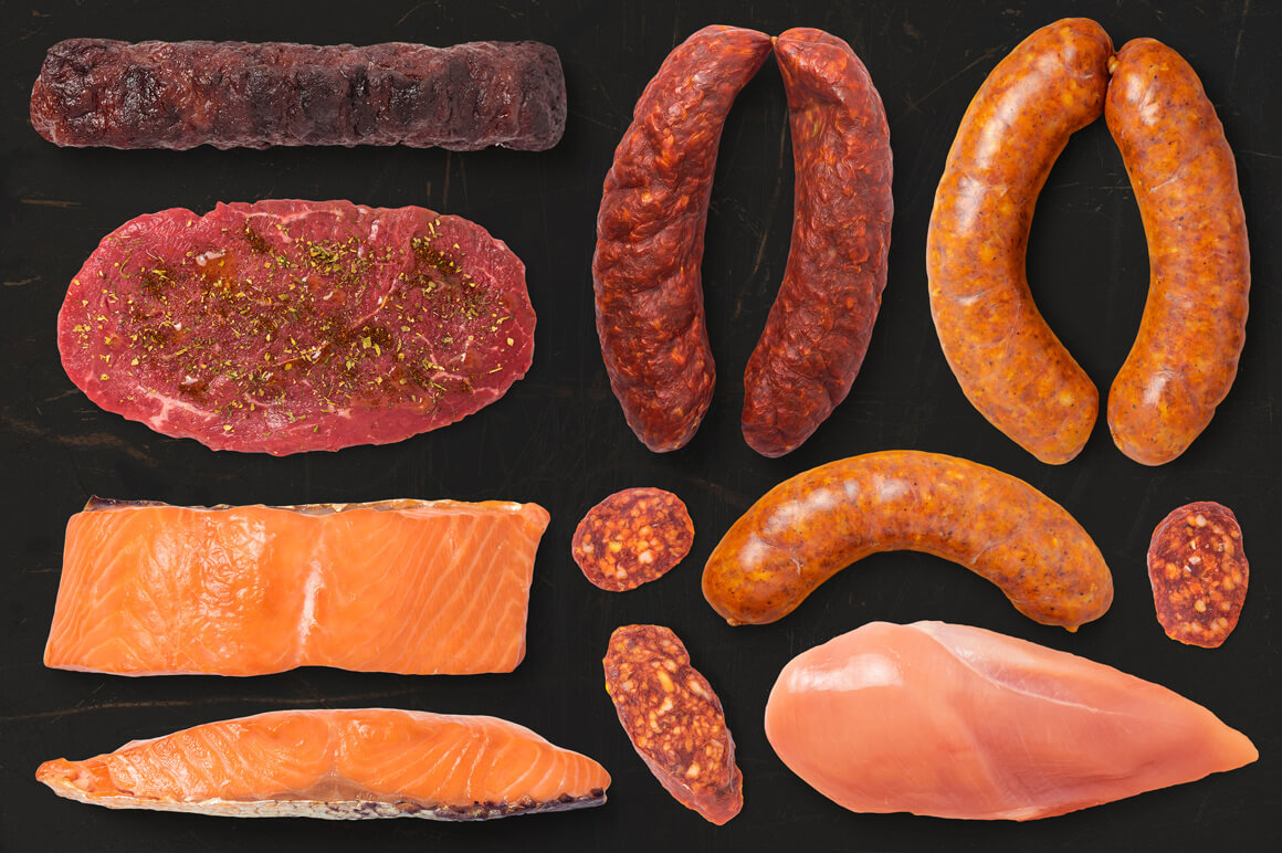Contain 7 PSD and 83 PNG files with fish, chicken liver, turkey wing, beef meat, pork meat, sausages, slices of sausage and salami, raw chicken breast, seasoned meat, salmon, grilled minced meat roll, ham, meatball, chicken heart, pork cracklings, eggs, egg shells, fried egg, boiled egg, raw egg, scrambled eggs, quail eggs, mixed raw eggs, etc.