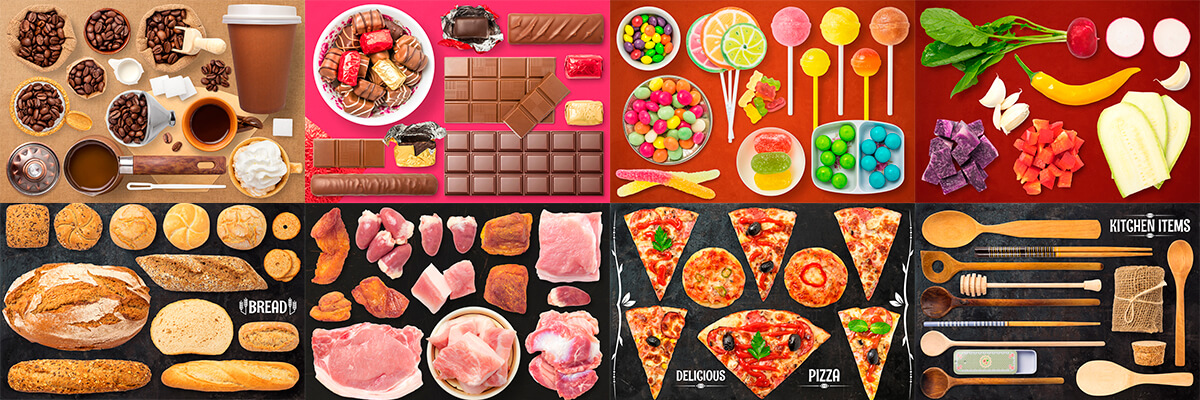 The Isolated Food Items Bundle is all you need to create beautiful presentations, hero images, headers, flyers, banners, mockups, great for blogs and websites, restaurant and food identity. 1053 unique items plus 90 high resolution backgrounds and premade PSD scenes to present your projects in an interesting and attractive way to your clients. All images are with a transparent background, converted to smart objects, with transparent shadow on a separate layer (top view). Compatible with Adobe Photoshop CS2 or any higher version. Extended license attached with no limitation for commercial purposes.