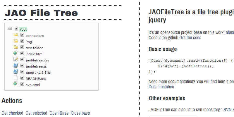 JAO File Tree It’s an interesting open source project base on the work of abeautifulsite. What makes it beautiful is the simplicity of its icons and the animations used when folder is expanded or closed.