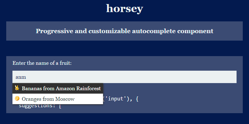 Horsey: JavaScript Auto-complete Suggestions Library | Bypeople