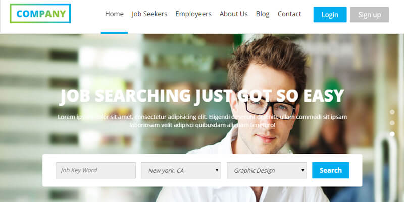 A job board template that features a nice flat style inside a single-page layout and that was designed specifically for job seeking websites.