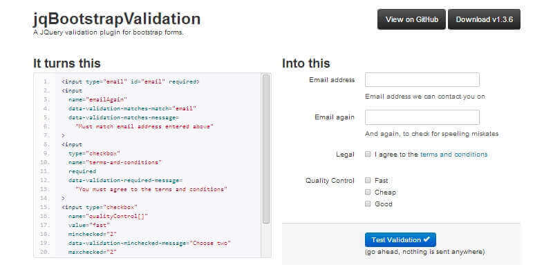 A JQuery validation plugin for bootstrap forms. It converts code into an organized bootstrap validation form for you to implement on your website.