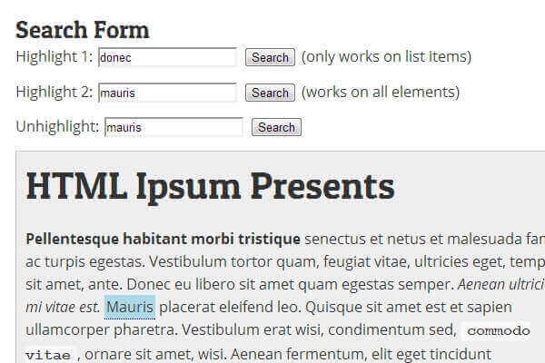 Highlighter – A MooTools Search & Highlight Plugin Example