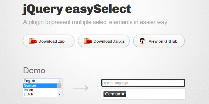 easySelect is a jQuery plugin for selecting elements in an easy way. To use it you just need to add jQuery to your site, place the multiple select element in your HTML, and call the easySelect() function on the element. This simplifies the way elements are selected, allowing you to convert it to tags. It was created by Tamer Aydın.
