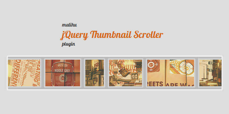 A cool jQuery and CSS thumbnail scroller plugin inspired by the ones made in Flash. It works by cursor movement or next and previous buttons, it has auto-scrolling feature and it’s simple to configure and style through CSS.