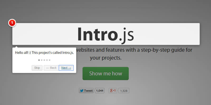 Intro.js is an excellent jQuery plugin that helps you create introductions on your websites featuring a step-by-step guide for any of your page’s essential elements. It is easy to use and is fast and small, with a weight of 4 KB (JS) and 2.5KB (CSS).
