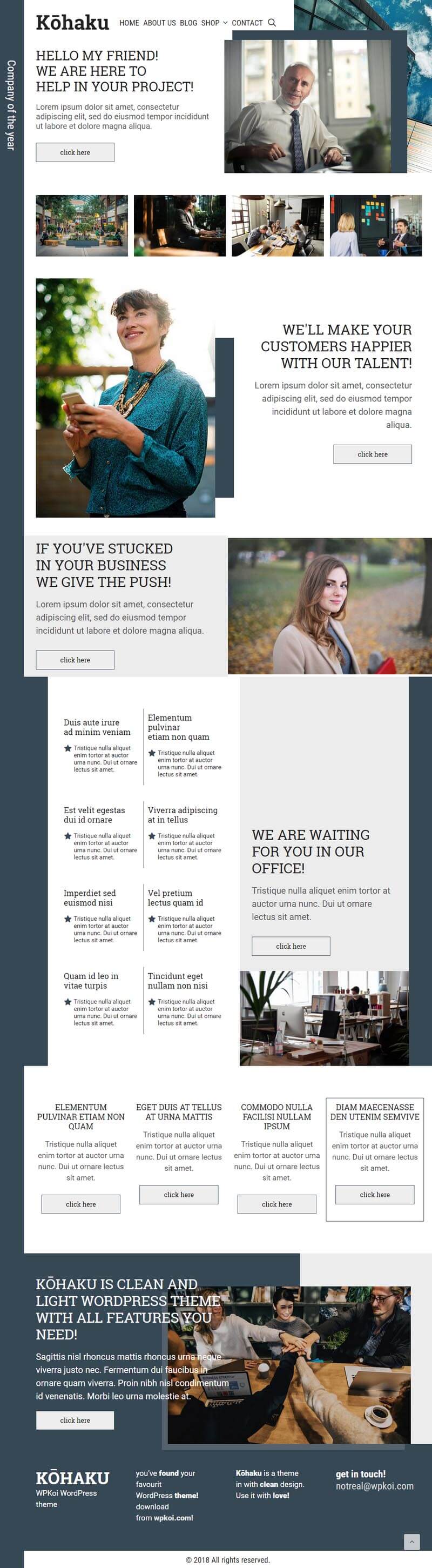 A full-width style WordPress theme that you can use for representing your startup, portfolio, webshop, etc. It is compatible with plugins like WooCommerce, Elementor, Contact Form 7, and comes with lots of customizer options. It is fully responsive, so it will look good on almost every device. Created by WPKoi.