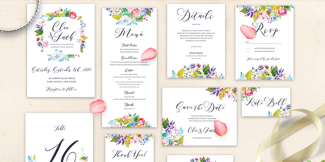 Flower Wedding Templates Set: Invitation, Menu, RSVP, Place Card & More