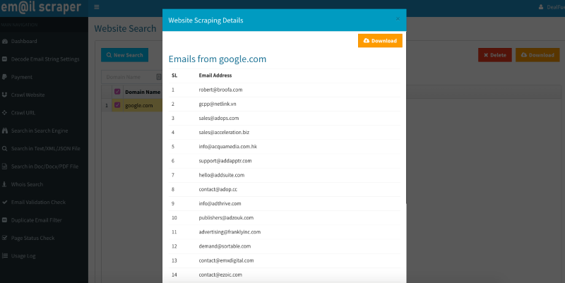 Get lifetime access to EmailScraper, a powerful SaaS tool that allows you to extract emails through various techniques like website crawl, URL crawl, keyword search in Google/Bing, search in txt file & several others!