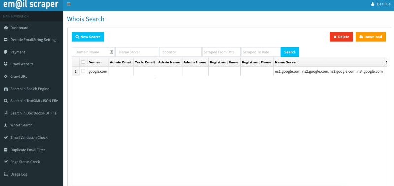 Whois Search: Get the domain’s whois information like admin email, technical email, name server, created date, expired date, last update date, sponsor. Have bulk search ability.