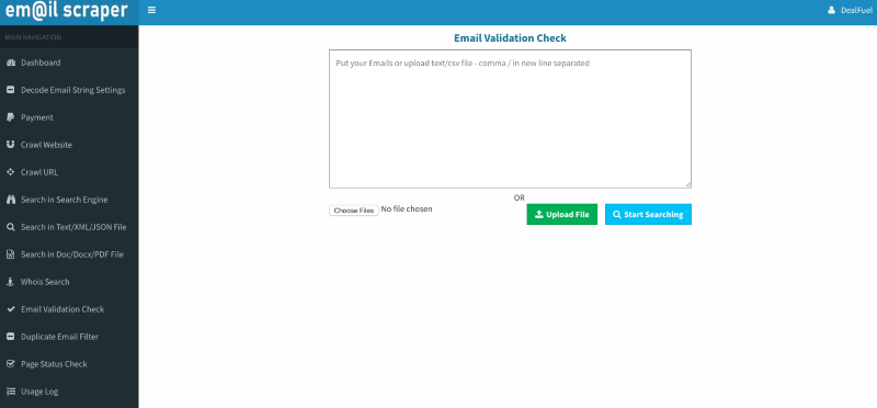 Bulk URL Crawling: Upload your url from text or csv file. Start scraping all url. The tool then start to scrape email from all url you have uploaded.