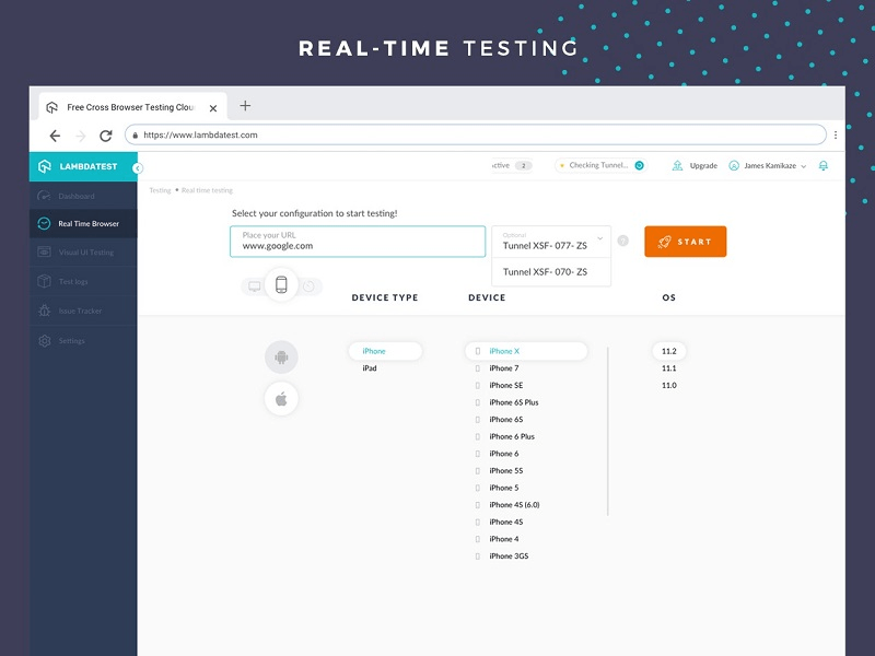 Perform live interactive cross browser testing of your public or locally hosted websites & web apps on 2000+ real mobile and desktop browsers running on real operating system. Debug in real time on both desktop and mobile browsers with integrated debugging tools.