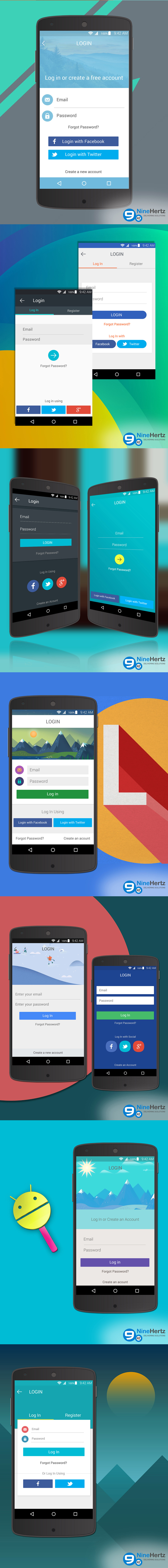 A UI kit featuring 10 appealing login screens fully layered in individual PSD format and a resolution of 1080 x 1920 pixels.