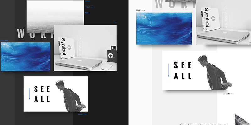 This pair of awesome portfolio template designs made in Sketch come in an all-black and all-white duality, with a layer positioning unique in his style and fully editable.