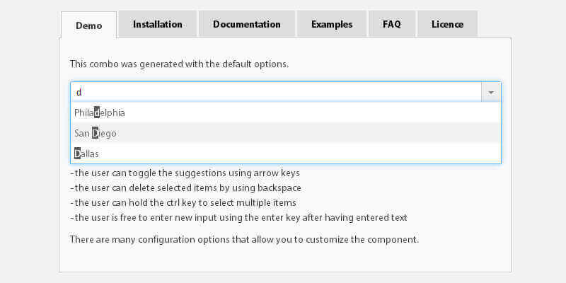 MagicSuggest is an auto-suggest combo with bootstrap theme using jQuery. It is a highly flexible auto suggest combo box in the line of Bootstrap themes.