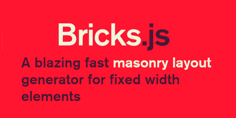 An incredibly fast masonry layout generator for fixed width elements, different from other current masonry solutions that lack performance, and are bloated with unnecessary features. Bricks capitalize on batched reading of layout properties for blazing fast packing time, no matter how many items.