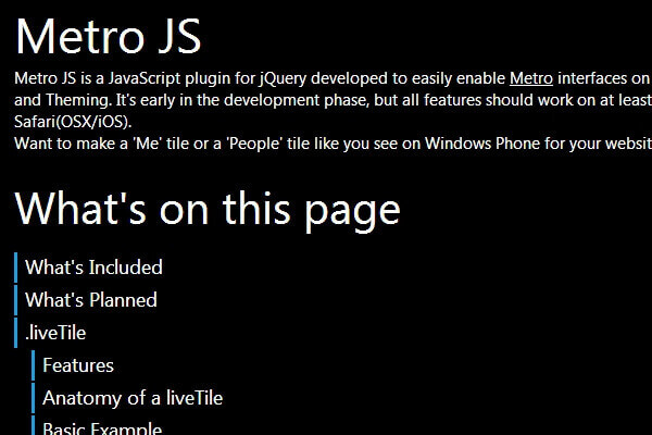Metro JS is a JavaScript plugin for jQuery developed to easily enable Metro interfaces on the web.