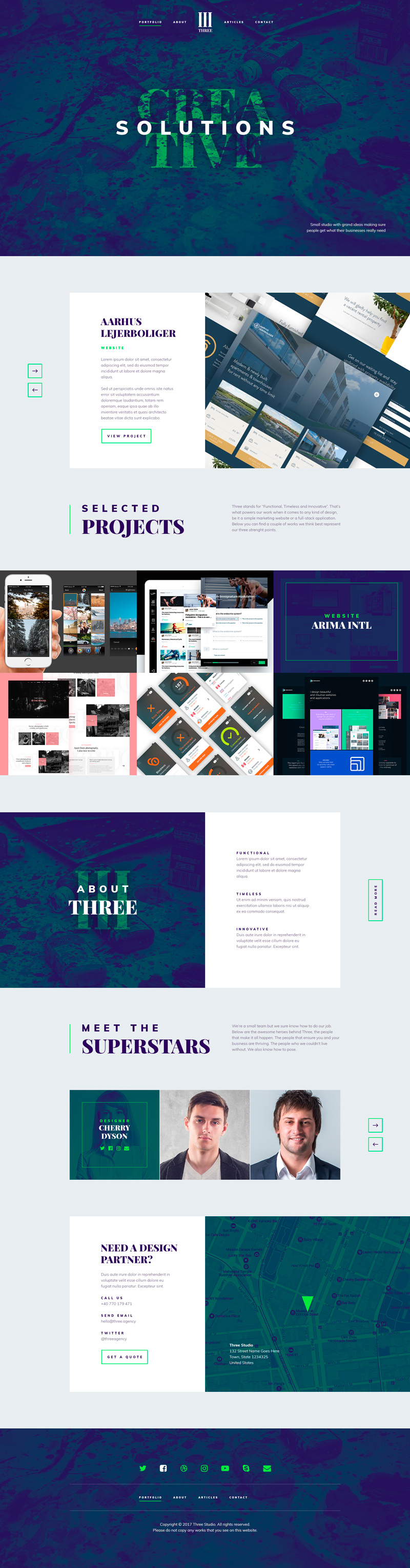 A cool PSD landing page made for agencies and independent designers. The template has a minimal style, mixing brushes and white space in a simple yet powerful way. It also uses nice typography combinations to make your site stand out.