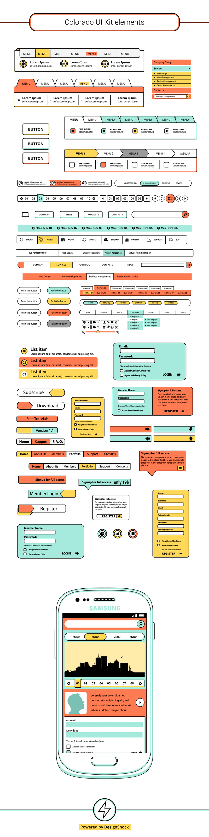 Colorado is a minimal GUI that offers a breath of fresh air, being clean, very basic but appealing and eye-catching at the same time, it is fun, colorful, with a bit of flat and some more of outlined style. It is comprised by over 50 items in three color variations, all built pixel perfect and vector as well.