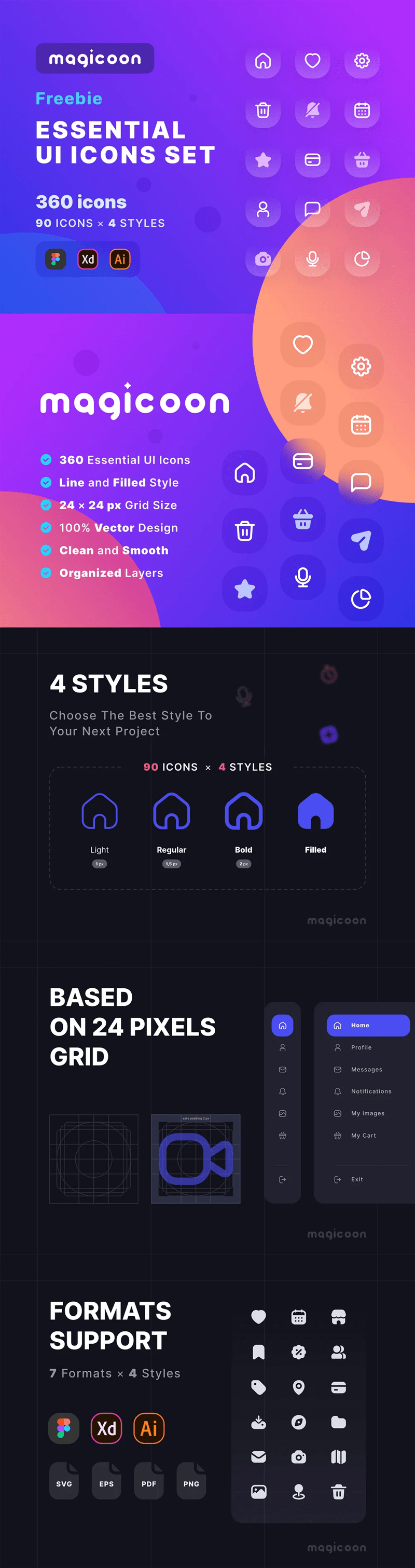 Magicoon is an essential & modern icon set featuring 4 styles that are ready to be implemented in your project with ease. Find out more Line Icons.
