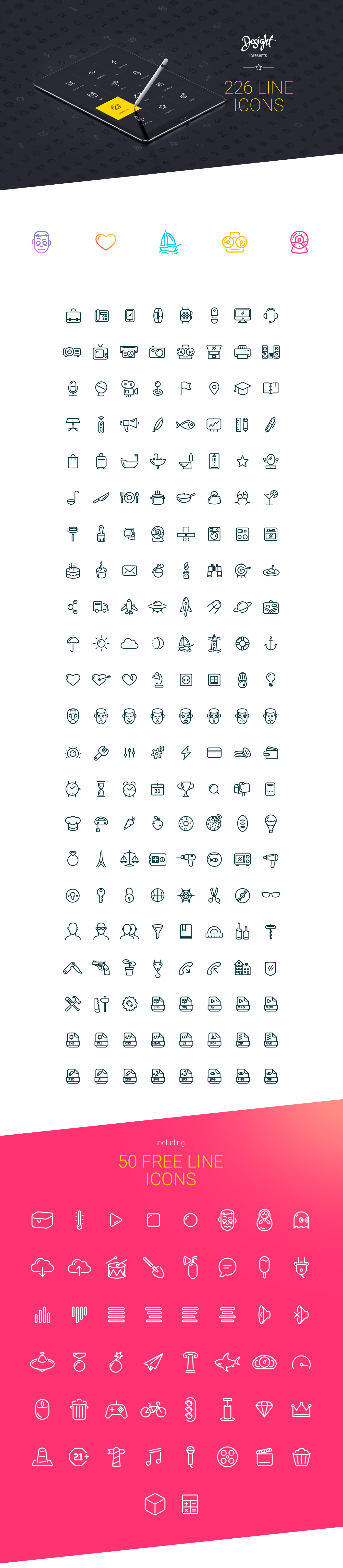 A collection of 50 icons with a line style for multiple purposes. Formats included are SVG, PSD and PNG in 32x64x120x250x500px sizes, totally editable and scalable. Use personally and commercially.