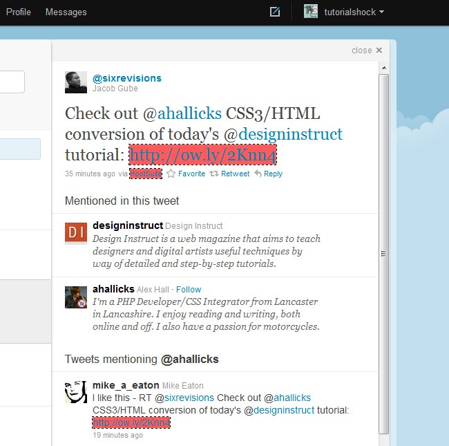 Just a few moments ago, we were lucky to get the New Twitter interface in our Tutorialshock account and we have to say that we’re pleased with it, the design is now more organized than before, the information is well distributed and bottom-line, we think it’s a step forward for Twitter.